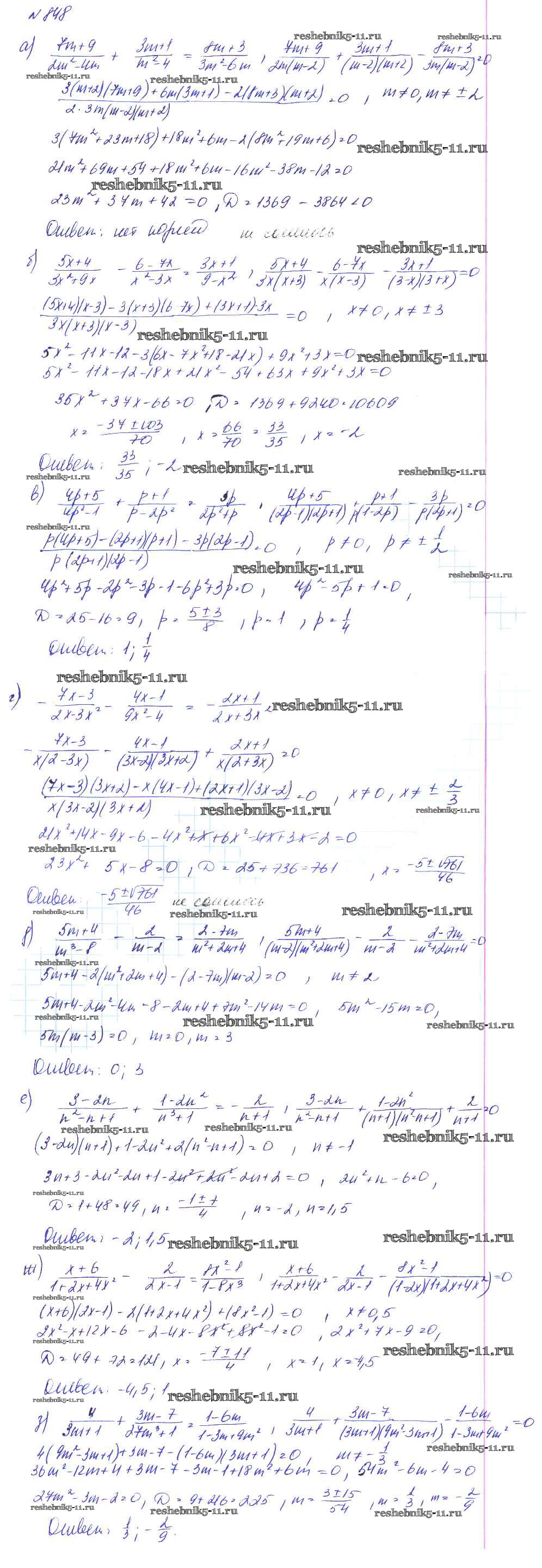 Готовая домашняя работа с ответами по Алгебре за 8 класс Макарычев, Миндюк, Нешков, Феоктистов Учебник Углубленный уровень Мнемозина 2014 ФГОС - Упражнения 848