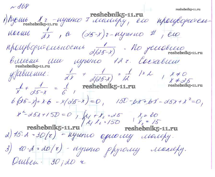 Готовая домашняя работа с ответами по Алгебре за 8 класс Макарычев, Миндюк, Нешков, Феоктистов Учебник Углубленный уровень Мнемозина 2014 ФГОС - Упражнения 868