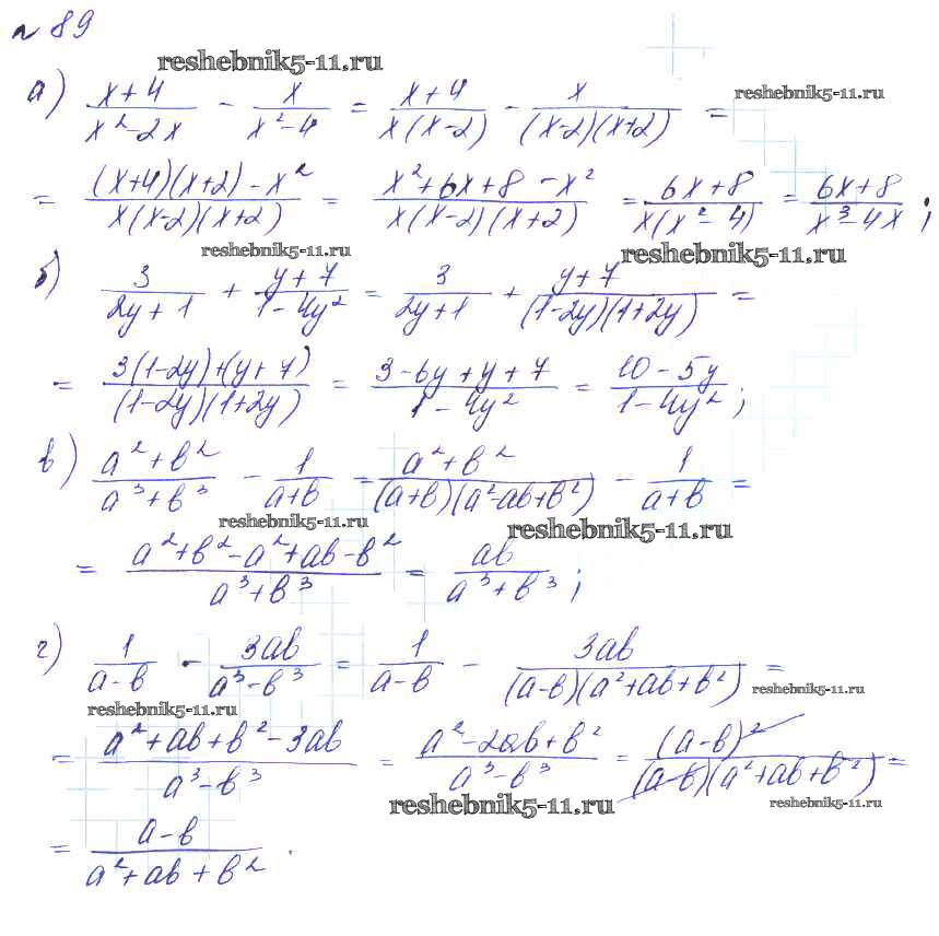 Готовая домашняя работа с ответами по Алгебре за 8 класс Макарычев, Миндюк, Нешков, Феоктистов Учебник Углубленный уровень Мнемозина 2014 ФГОС - Упражнения 89
