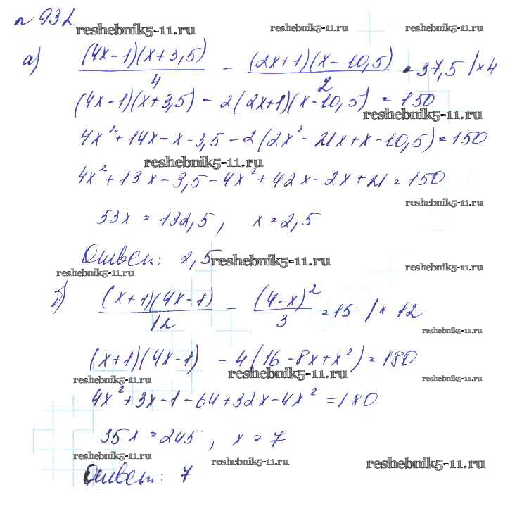 Готовая домашняя работа с ответами по Алгебре за 8 класс Макарычев, Миндюк, Нешков, Феоктистов Учебник Углубленный уровень Мнемозина 2014 ФГОС - Упражнения 932