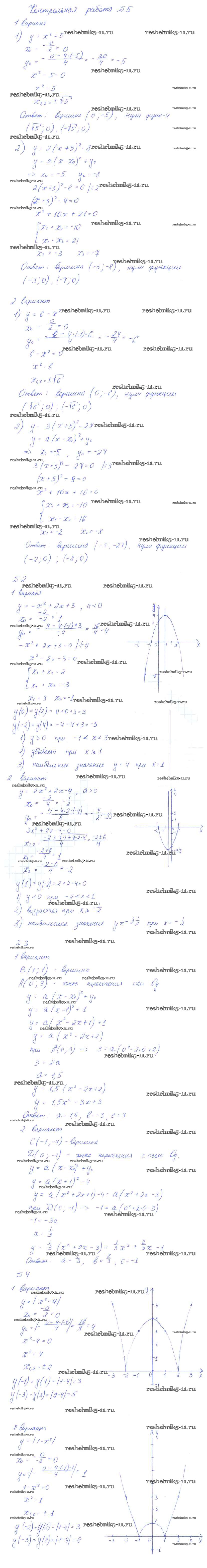 Готовая домашняя работа с ответами по Алгебре за 8 класс Ткачева, Федорова, Шабунин Дидактические материалы Просвещение 2013 ФГОС - Контрольные работы 5