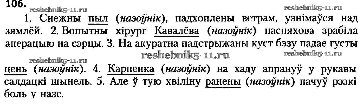 Готовая домашняя работа с ответами по Белорусскому языку за 8 класс Бадзевіч, Саматыя Учебник Национальный институт образования 2015 ФГОС - Упражнения 106