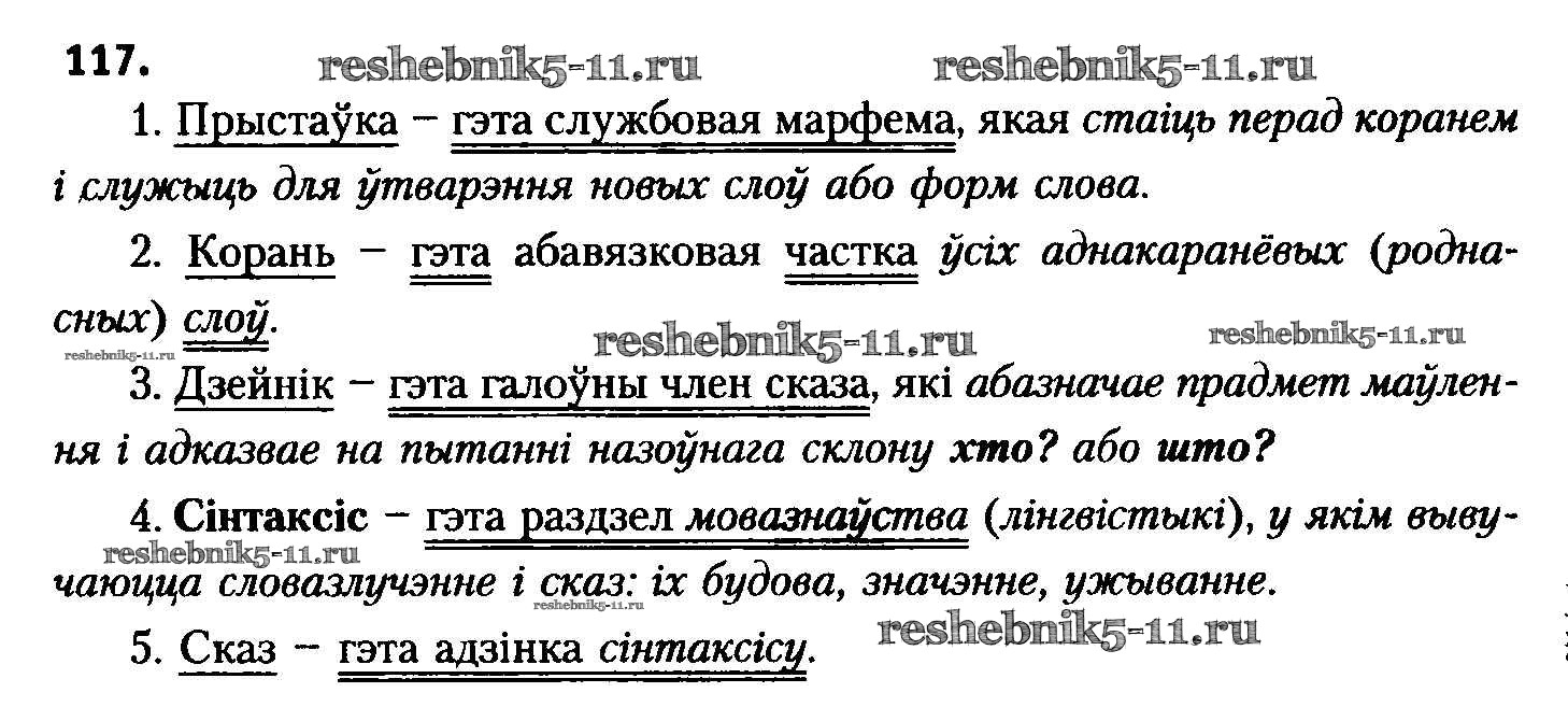 Готовая домашняя работа с ответами по Белорусскому языку за 8 класс Бадзевіч, Саматыя Учебник Национальный институт образования 2015 ФГОС - Упражнения 117