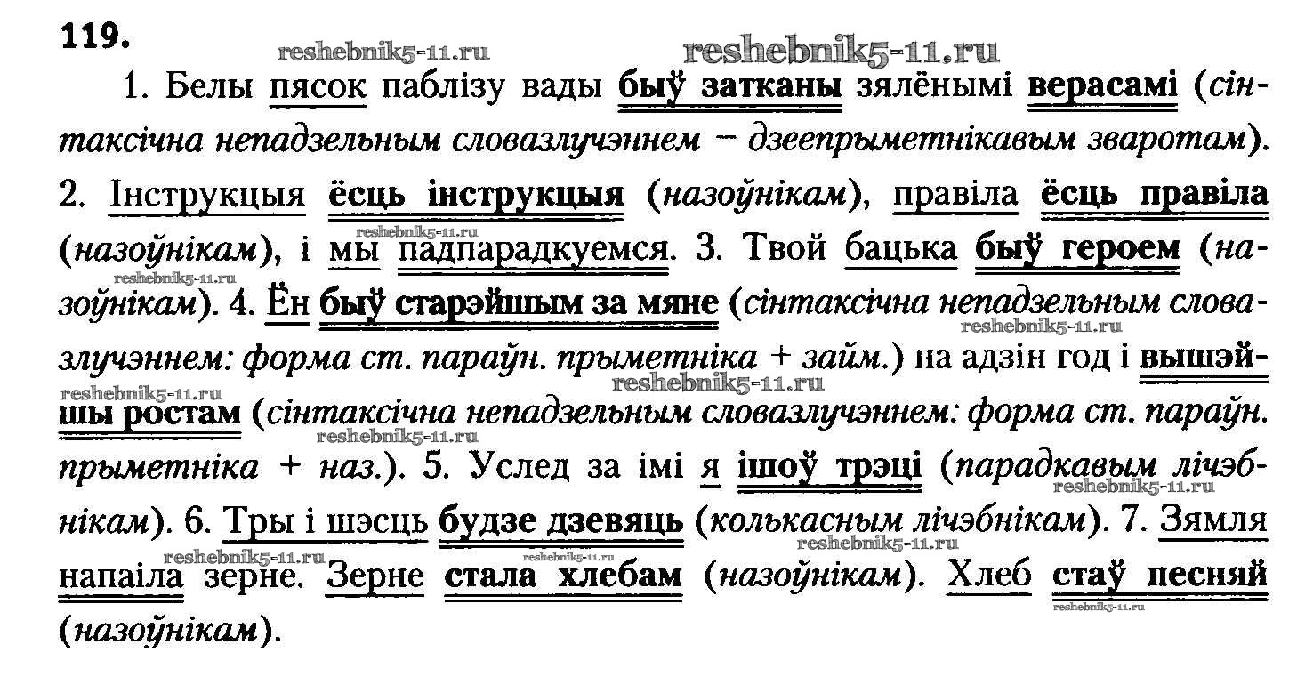 Готовая домашняя работа с ответами по Белорусскому языку за 8 класс Бадзевіч, Саматыя Учебник Национальный институт образования 2015 ФГОС - Упражнения 119