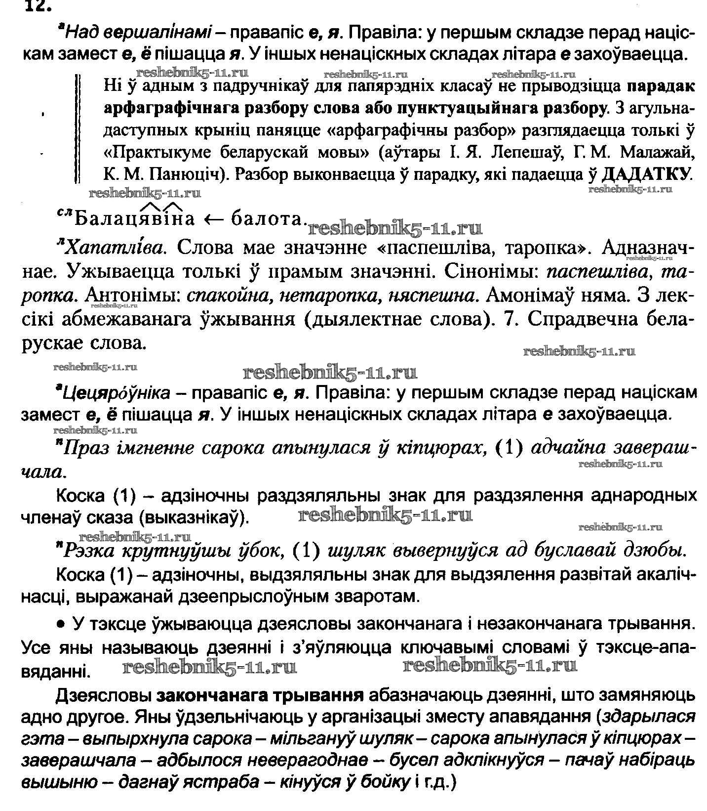 Готовая домашняя работа с ответами по Белорусскому языку за 8 класс Бадзевіч, Саматыя Учебник Национальный институт образования 2015 ФГОС - Упражнения 12
