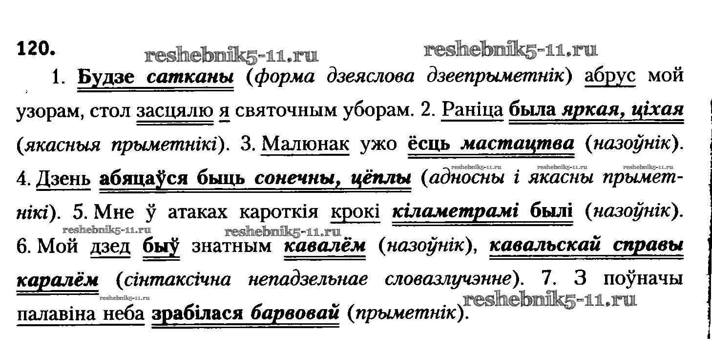 Готовая домашняя работа с ответами по Белорусскому языку за 8 класс Бадзевіч, Саматыя Учебник Национальный институт образования 2015 ФГОС - Упражнения 120