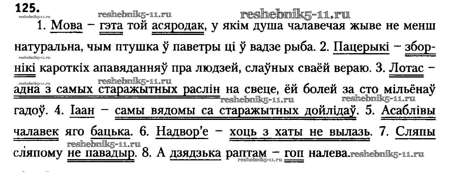 Готовая домашняя работа с ответами по Белорусскому языку за 8 класс Бадзевіч, Саматыя Учебник Национальный институт образования 2015 ФГОС - Упражнения 125