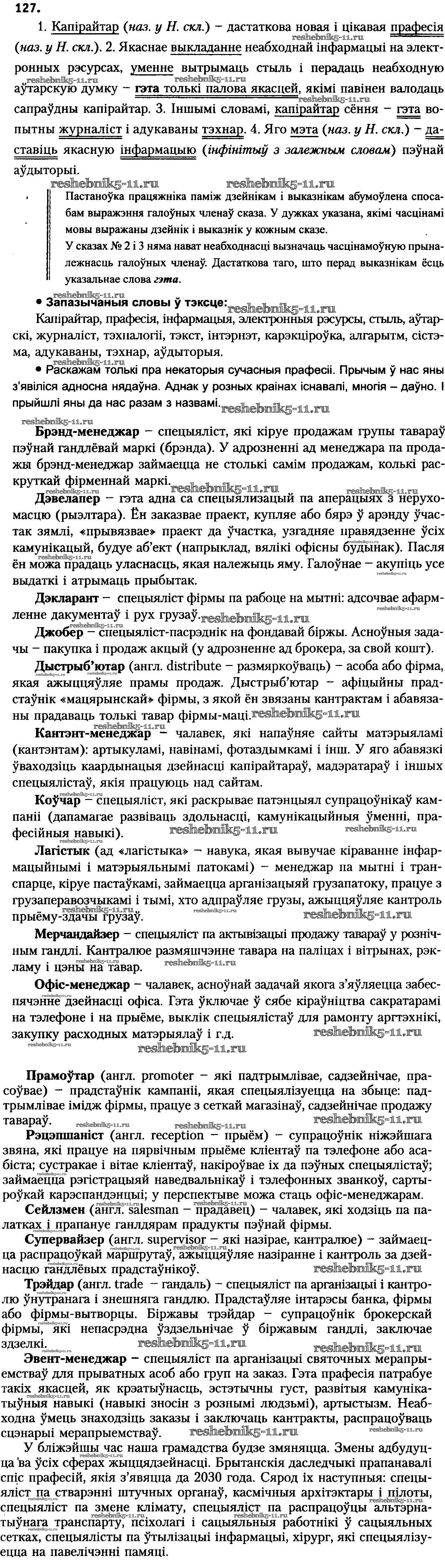 Готовая домашняя работа с ответами по Белорусскому языку за 8 класс Бадзевіч, Саматыя Учебник Национальный институт образования 2015 ФГОС - Упражнения 127