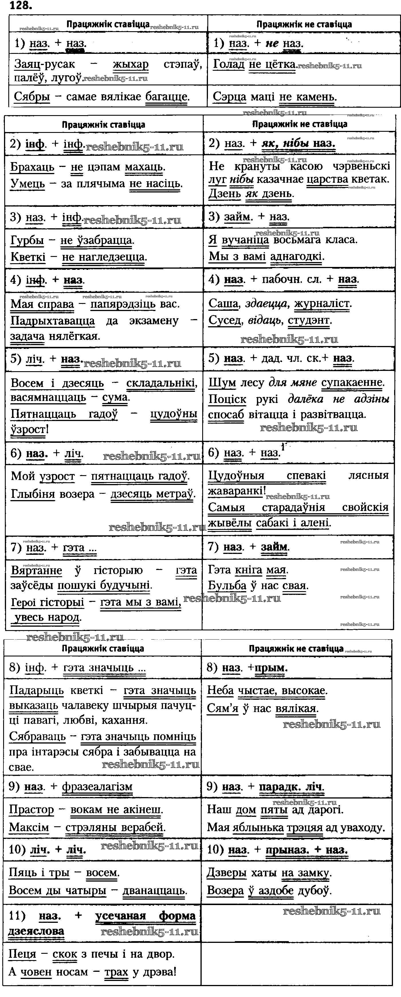 Готовая домашняя работа с ответами по Белорусскому языку за 8 класс Бадзевіч, Саматыя Учебник Национальный институт образования 2015 ФГОС - Упражнения 128