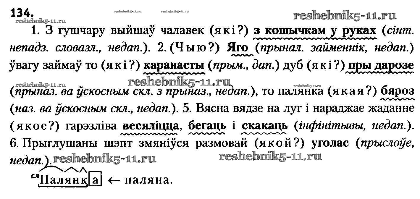 Готовая домашняя работа с ответами по Белорусскому языку за 8 класс Бадзевіч, Саматыя Учебник Национальный институт образования 2015 ФГОС - Упражнения 134