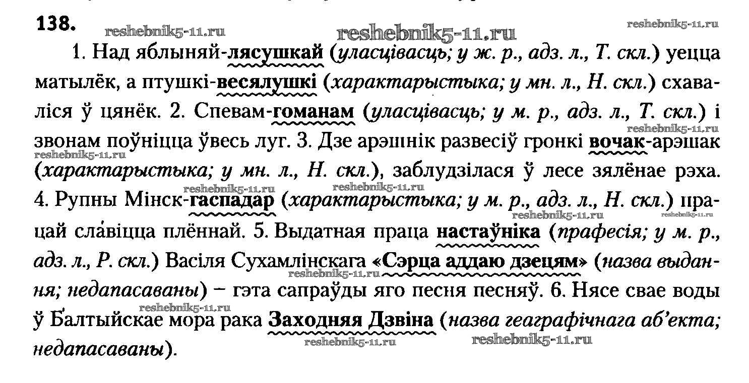 Готовая домашняя работа с ответами по Белорусскому языку за 8 класс Бадзевіч, Саматыя Учебник Национальный институт образования 2015 ФГОС - Упражнения 138
