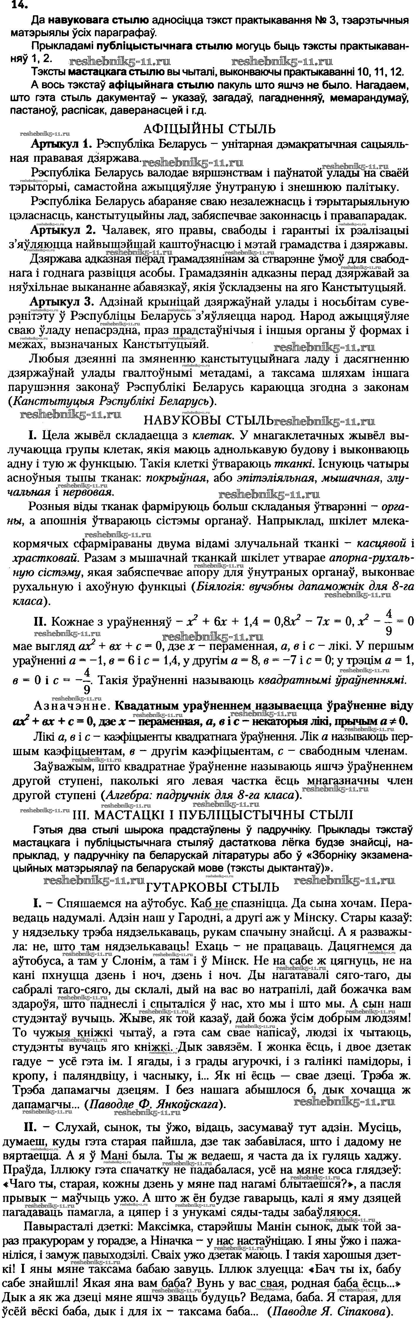 Готовая домашняя работа с ответами по Белорусскому языку за 8 класс Бадзевіч, Саматыя Учебник Национальный институт образования 2015 ФГОС - Упражнения 14