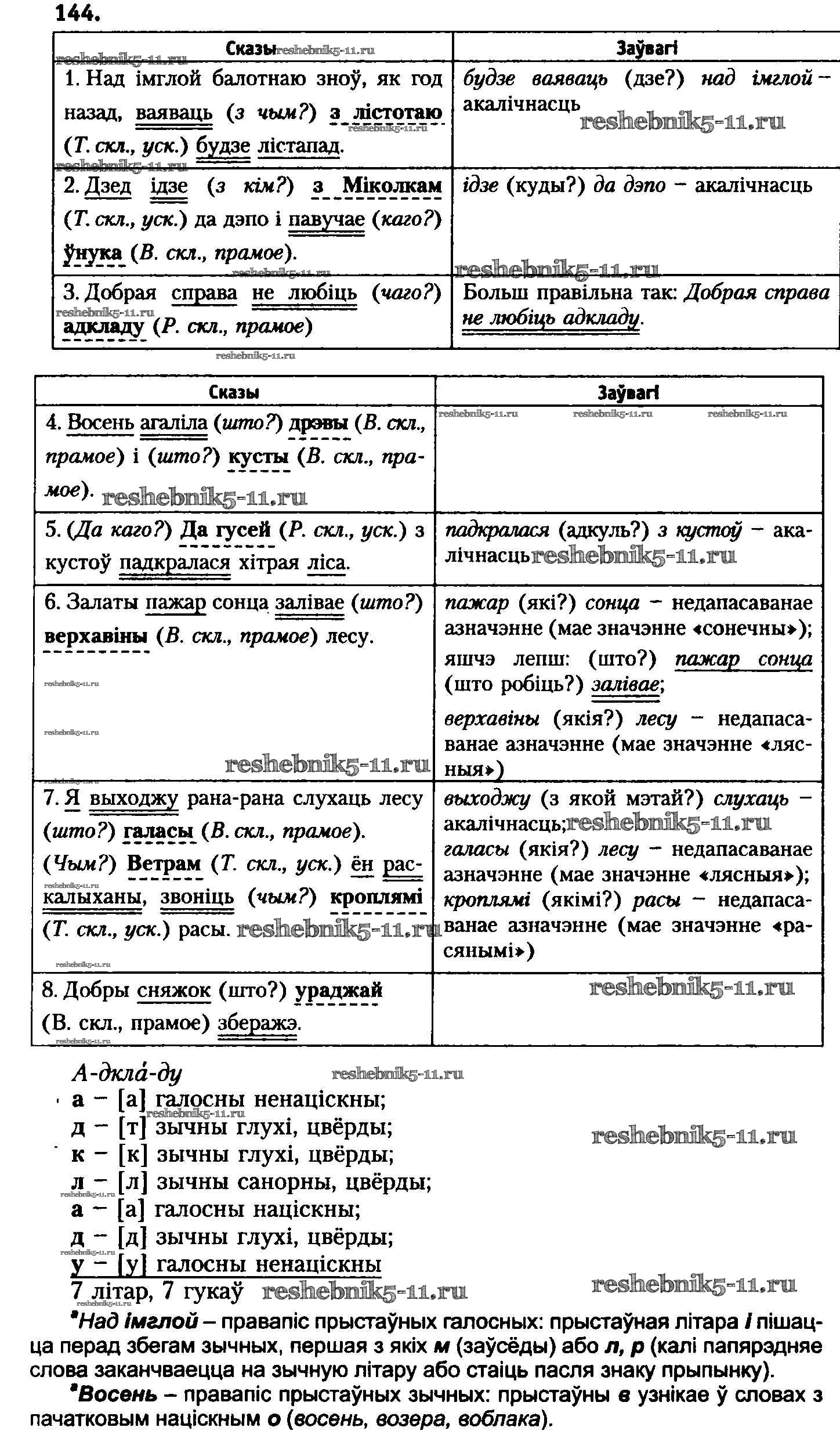Готовая домашняя работа с ответами по Белорусскому языку за 8 класс Бадзевіч, Саматыя Учебник Национальный институт образования 2015 ФГОС - Упражнения 144
