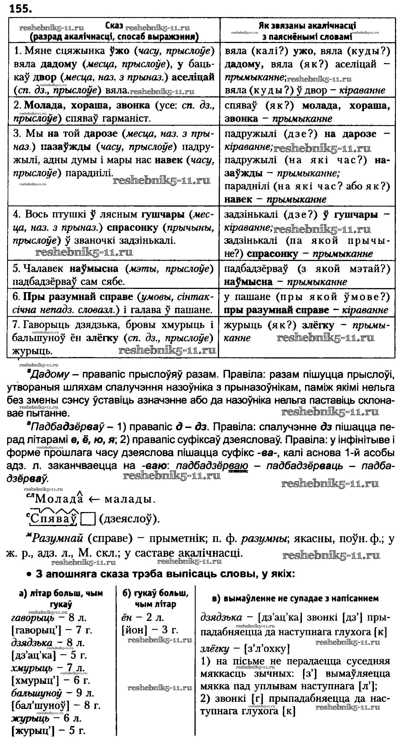 Готовая домашняя работа с ответами по Белорусскому языку за 8 класс Бадзевіч, Саматыя Учебник Национальный институт образования 2015 ФГОС - Упражнения 155