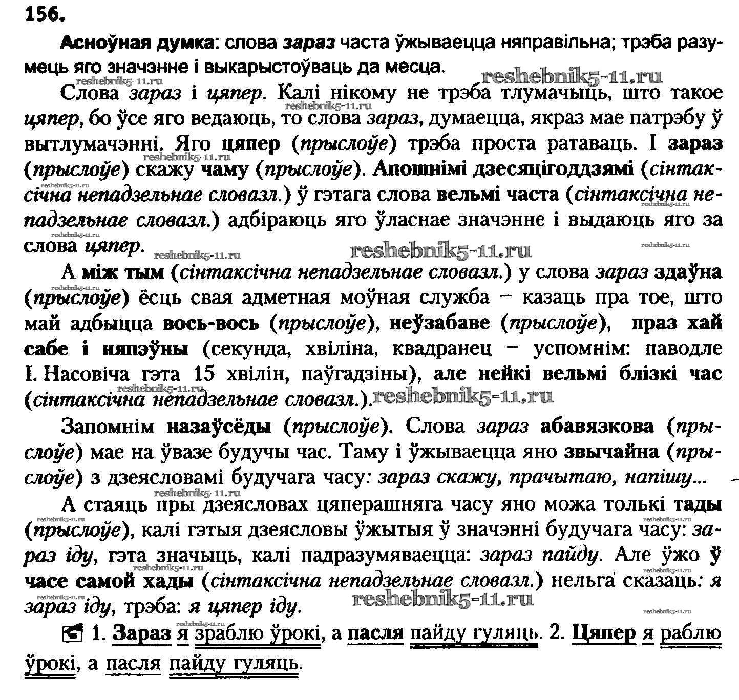 Готовая домашняя работа с ответами по Белорусскому языку за 8 класс Бадзевіч, Саматыя Учебник Национальный институт образования 2015 ФГОС - Упражнения 156