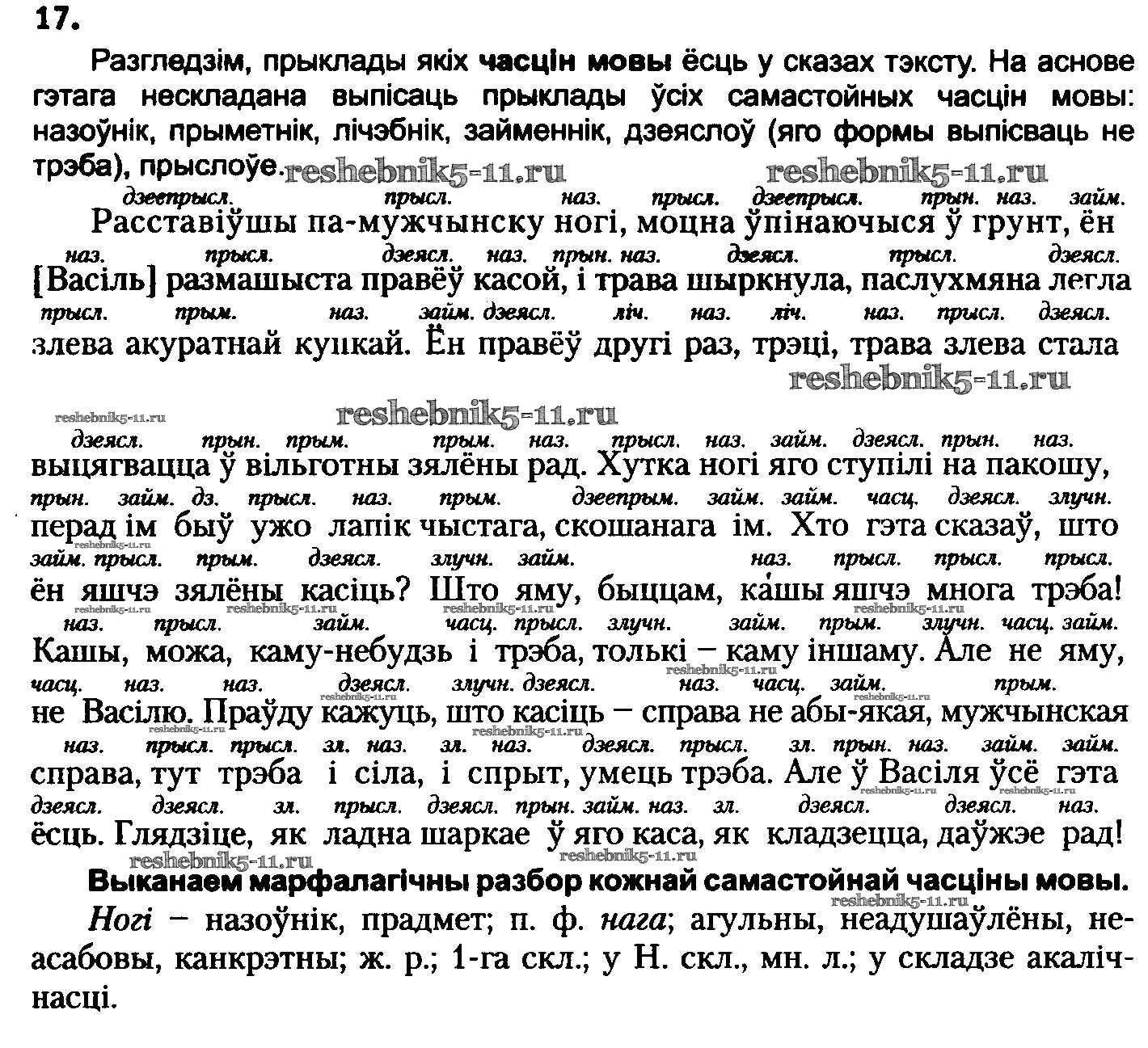 Готовая домашняя работа с ответами по Белорусскому языку за 8 класс Бадзевіч, Саматыя Учебник Национальный институт образования 2015 ФГОС - Упражнения 17