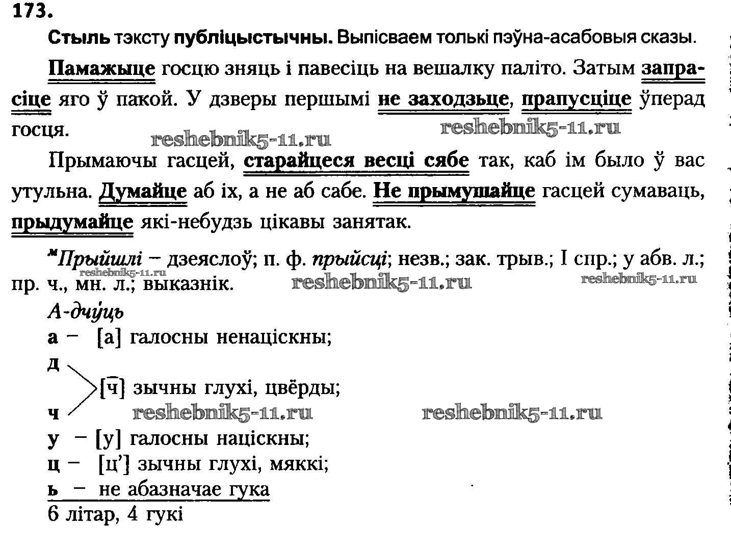Готовая домашняя работа с ответами по Белорусскому языку за 8 класс Бадзевіч, Саматыя Учебник Национальный институт образования 2015 ФГОС - Упражнения 173