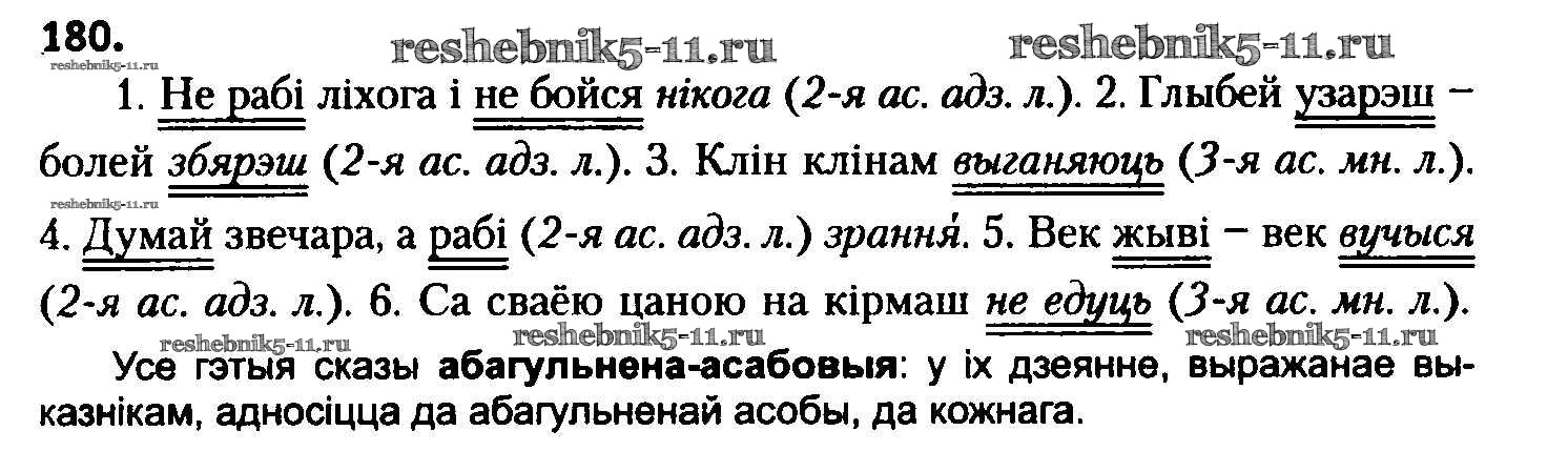 Готовая домашняя работа с ответами по Белорусскому языку за 8 класс Бадзевіч, Саматыя Учебник Национальный институт образования 2015 ФГОС - Упражнения 180