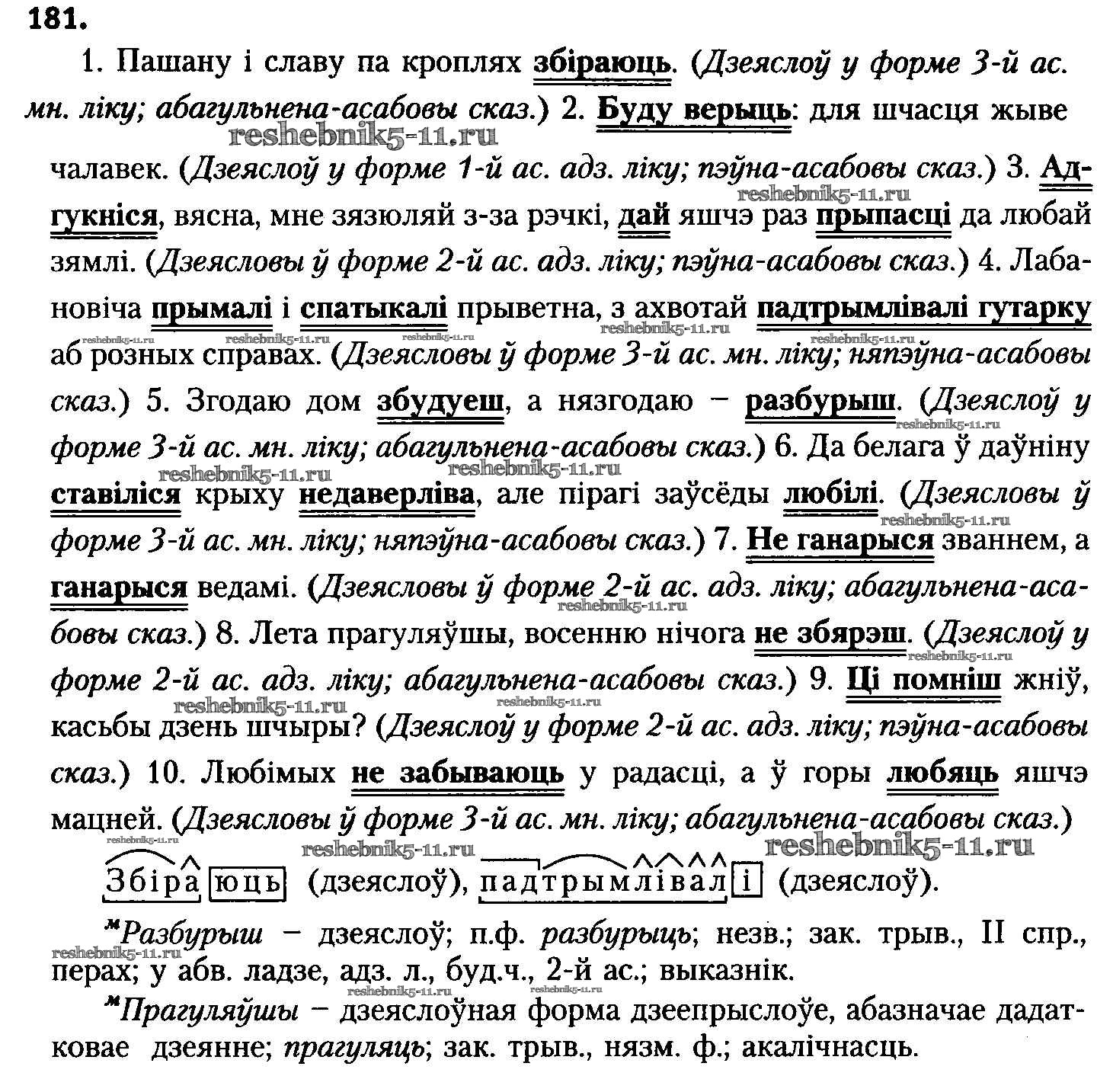 Готовая домашняя работа с ответами по Белорусскому языку за 8 класс Бадзевіч, Саматыя Учебник Национальный институт образования 2015 ФГОС - Упражнения 181