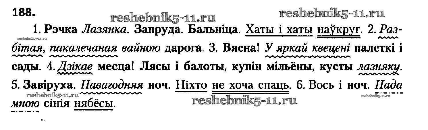 Готовая домашняя работа с ответами по Белорусскому языку за 8 класс Бадзевіч, Саматыя Учебник Национальный институт образования 2015 ФГОС - Упражнения 188