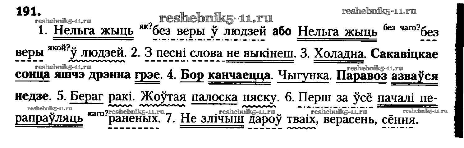 Готовая домашняя работа с ответами по Белорусскому языку за 8 класс Бадзевіч, Саматыя Учебник Национальный институт образования 2015 ФГОС - Упражнения 191