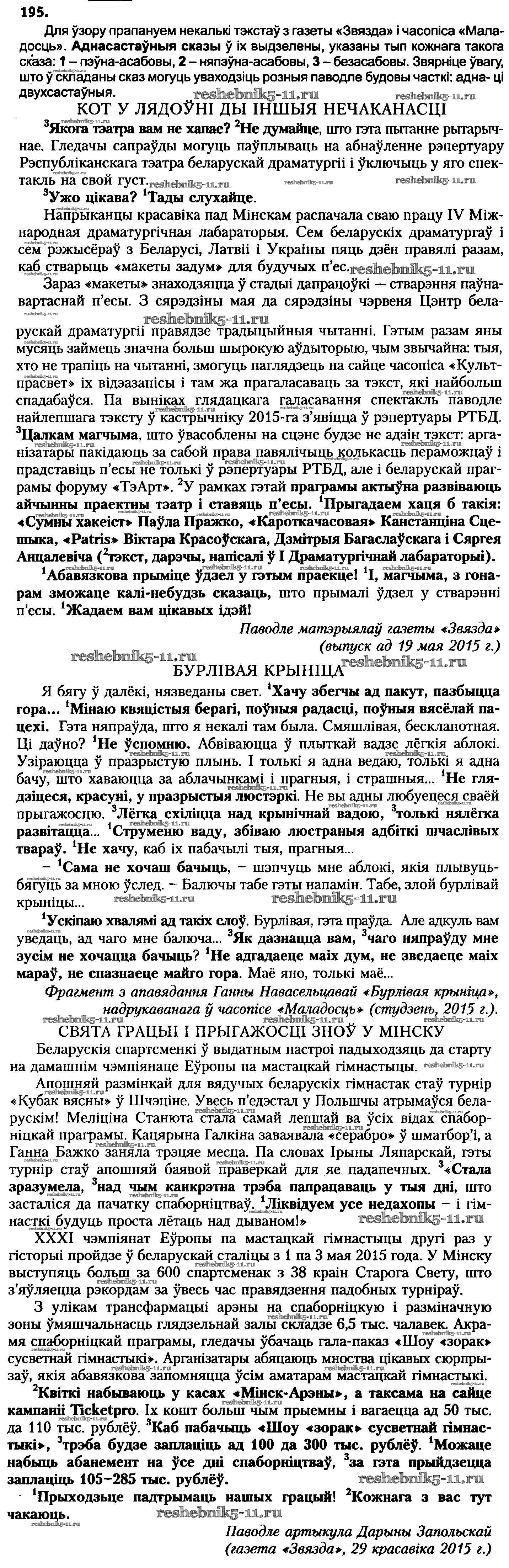 Готовая домашняя работа с ответами по Белорусскому языку за 8 класс Бадзевіч, Саматыя Учебник Национальный институт образования 2015 ФГОС - Упражнения 195
