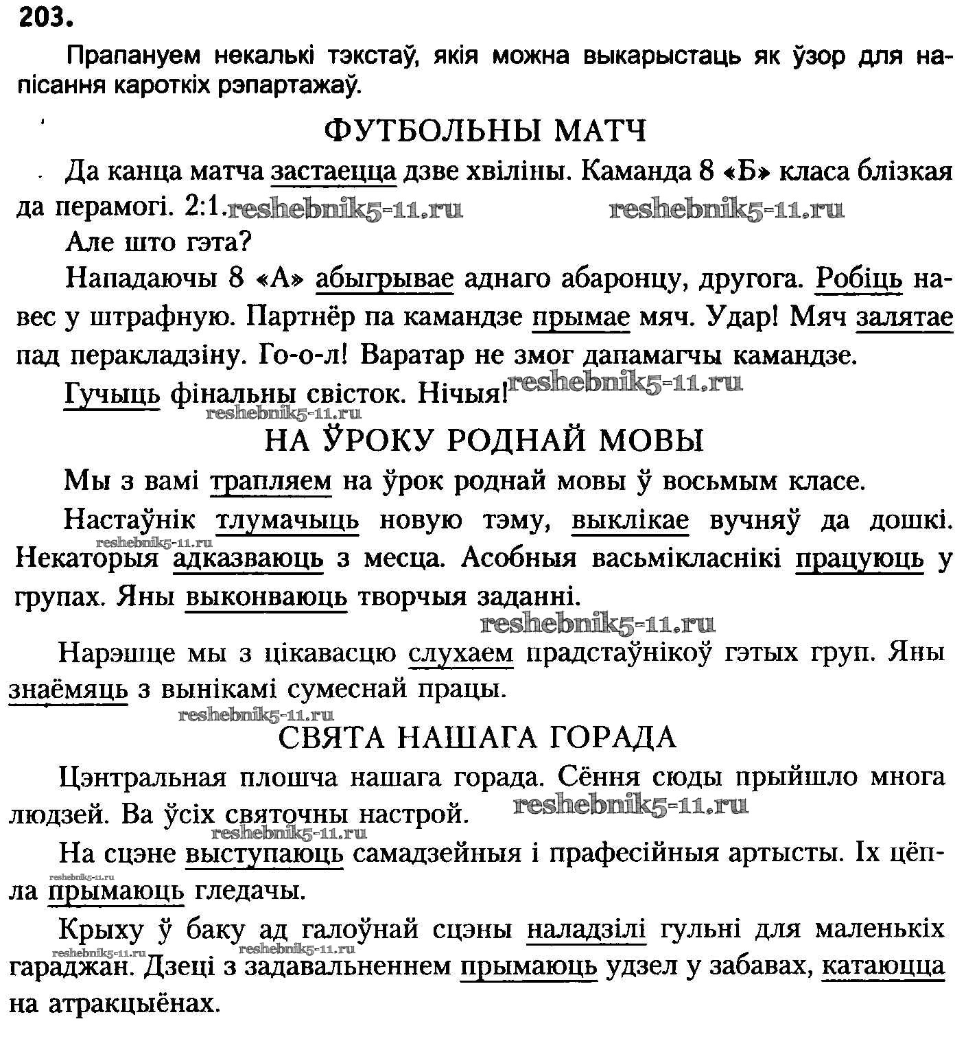 Готовая домашняя работа с ответами по Белорусскому языку за 8 класс Бадзевіч, Саматыя Учебник Национальный институт образования 2015 ФГОС - Упражнения 203