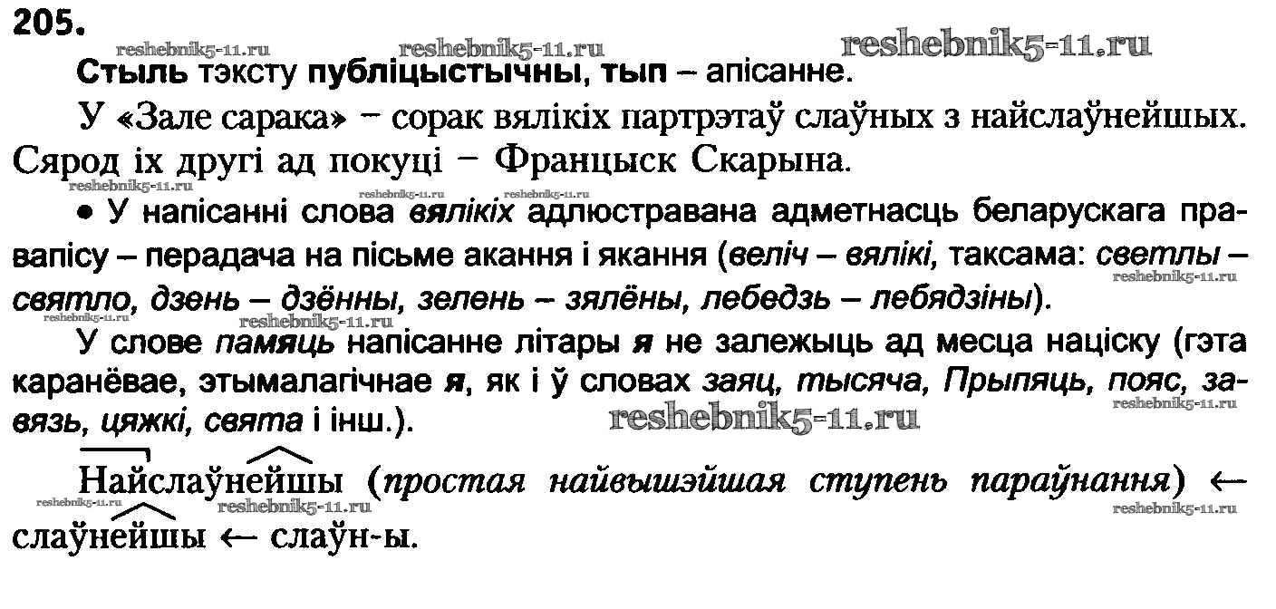 Готовая домашняя работа с ответами по Белорусскому языку за 8 класс Бадзевіч, Саматыя Учебник Национальный институт образования 2015 ФГОС - Упражнения 205