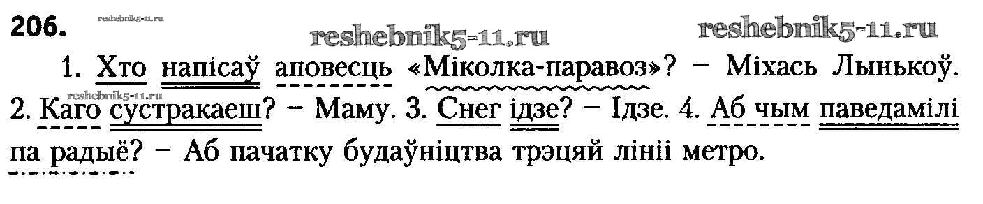 Готовая домашняя работа с ответами по Белорусскому языку за 8 класс Бадзевіч, Саматыя Учебник Национальный институт образования 2015 ФГОС - Упражнения 206