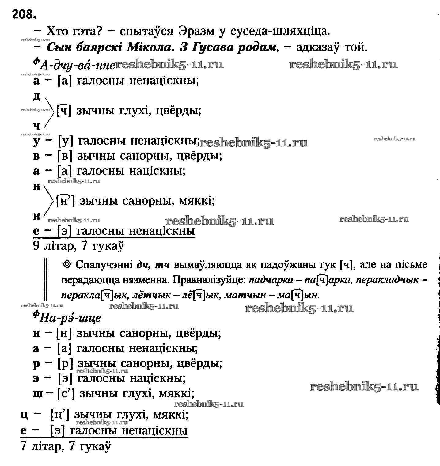 Готовая домашняя работа с ответами по Белорусскому языку за 8 класс Бадзевіч, Саматыя Учебник Национальный институт образования 2015 ФГОС - Упражнения 208