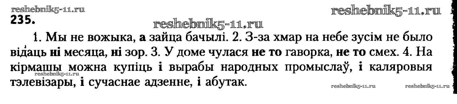 Готовая домашняя работа с ответами по Белорусскому языку за 8 класс Бадзевіч, Саматыя Учебник Национальный институт образования 2015 ФГОС - Упражнения 235