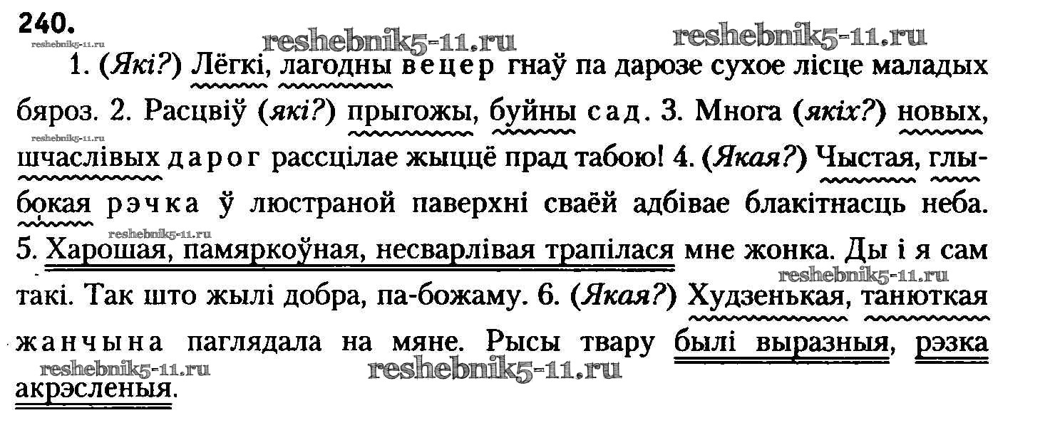 Готовая домашняя работа с ответами по Белорусскому языку за 8 класс Бадзевіч, Саматыя Учебник Национальный институт образования 2015 ФГОС - Упражнения 240