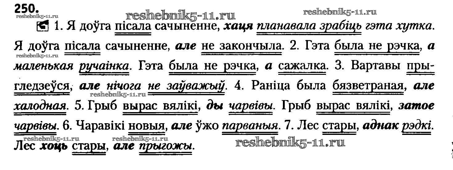 Готовая домашняя работа с ответами по Белорусскому языку за 8 класс Бадзевіч, Саматыя Учебник Национальный институт образования 2015 ФГОС - Упражнения 250