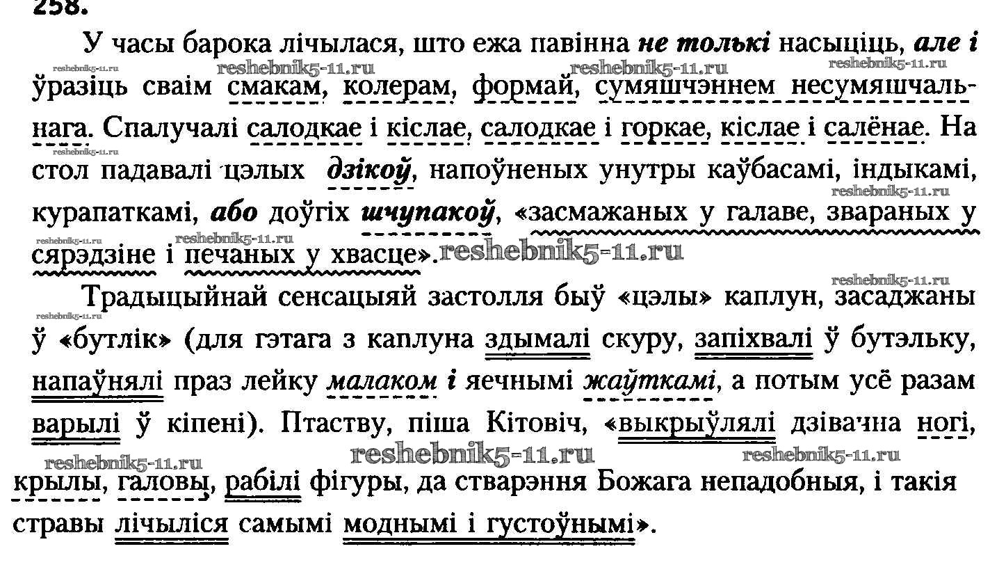 Готовая домашняя работа с ответами по Белорусскому языку за 8 класс Бадзевіч, Саматыя Учебник Национальный институт образования 2015 ФГОС - Упражнения 258