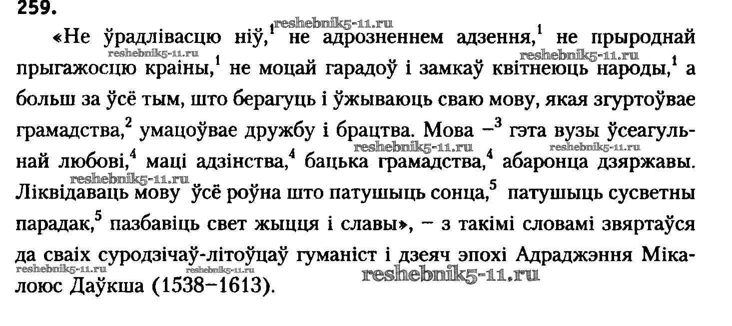 Готовая домашняя работа с ответами по Белорусскому языку за 8 класс Бадзевіч, Саматыя Учебник Национальный институт образования 2015 ФГОС - Упражнения 259