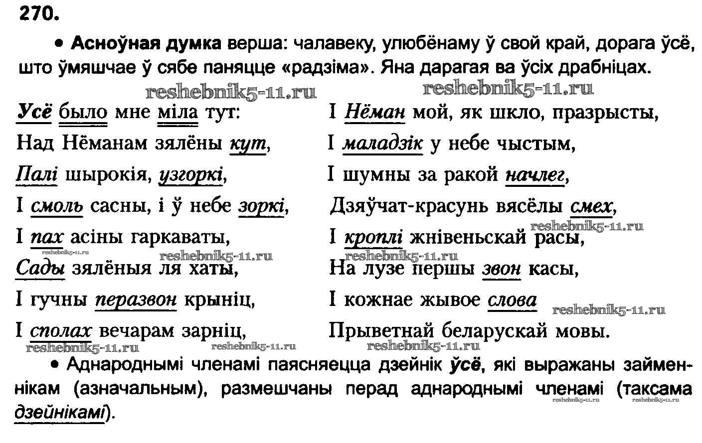Готовая домашняя работа с ответами по Белорусскому языку за 8 класс Бадзевіч, Саматыя Учебник Национальный институт образования 2015 ФГОС - Упражнения 270