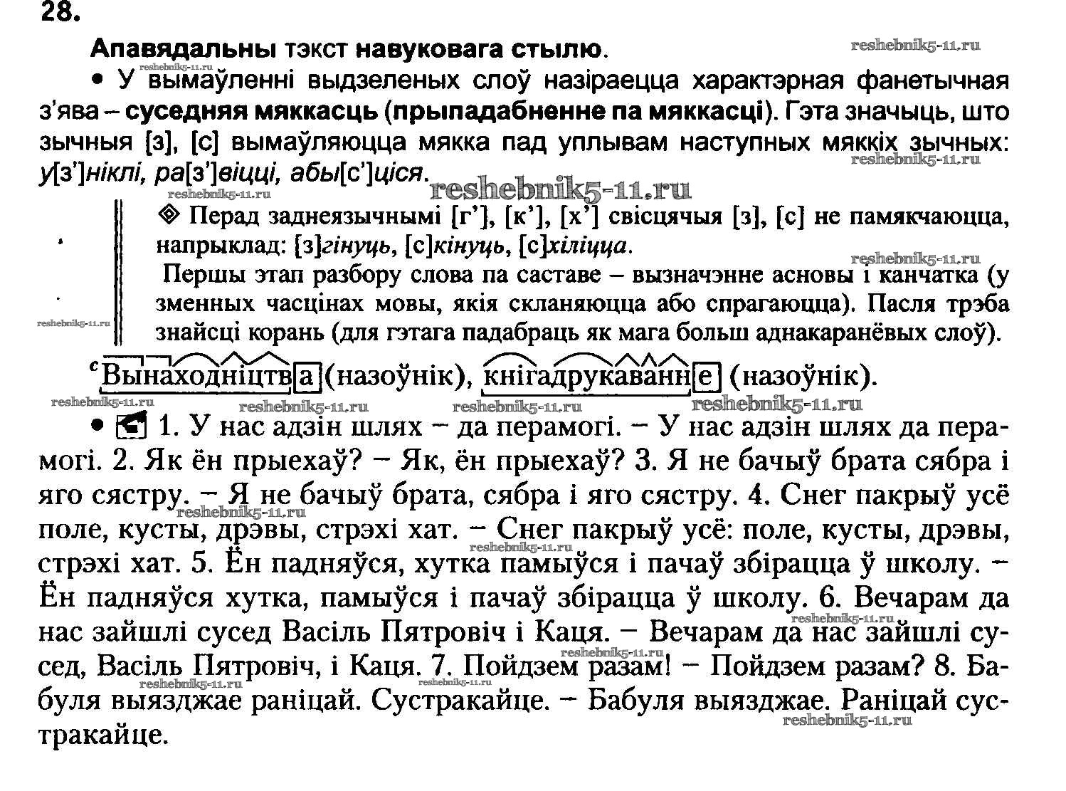 Готовая домашняя работа с ответами по Белорусскому языку за 8 класс Бадзевіч, Саматыя Учебник Национальный институт образования 2015 ФГОС - Упражнения 28