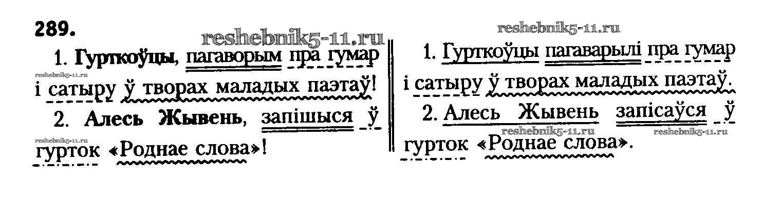 Готовая домашняя работа с ответами по Белорусскому языку за 8 класс Бадзевіч, Саматыя Учебник Национальный институт образования 2015 ФГОС - Упражнения 289
