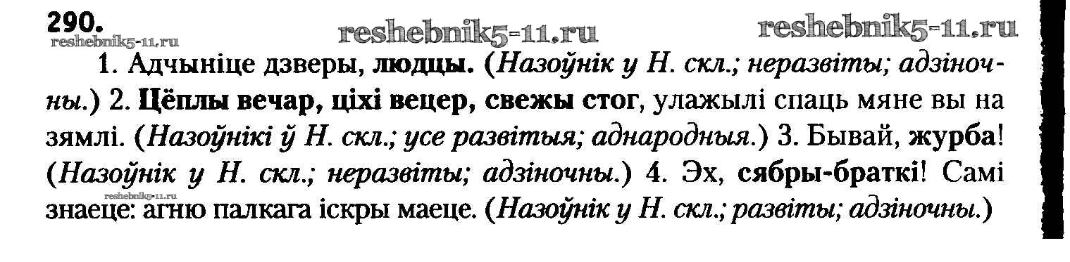 Готовая домашняя работа с ответами по Белорусскому языку за 8 класс Бадзевіч, Саматыя Учебник Национальный институт образования 2015 ФГОС - Упражнения 290