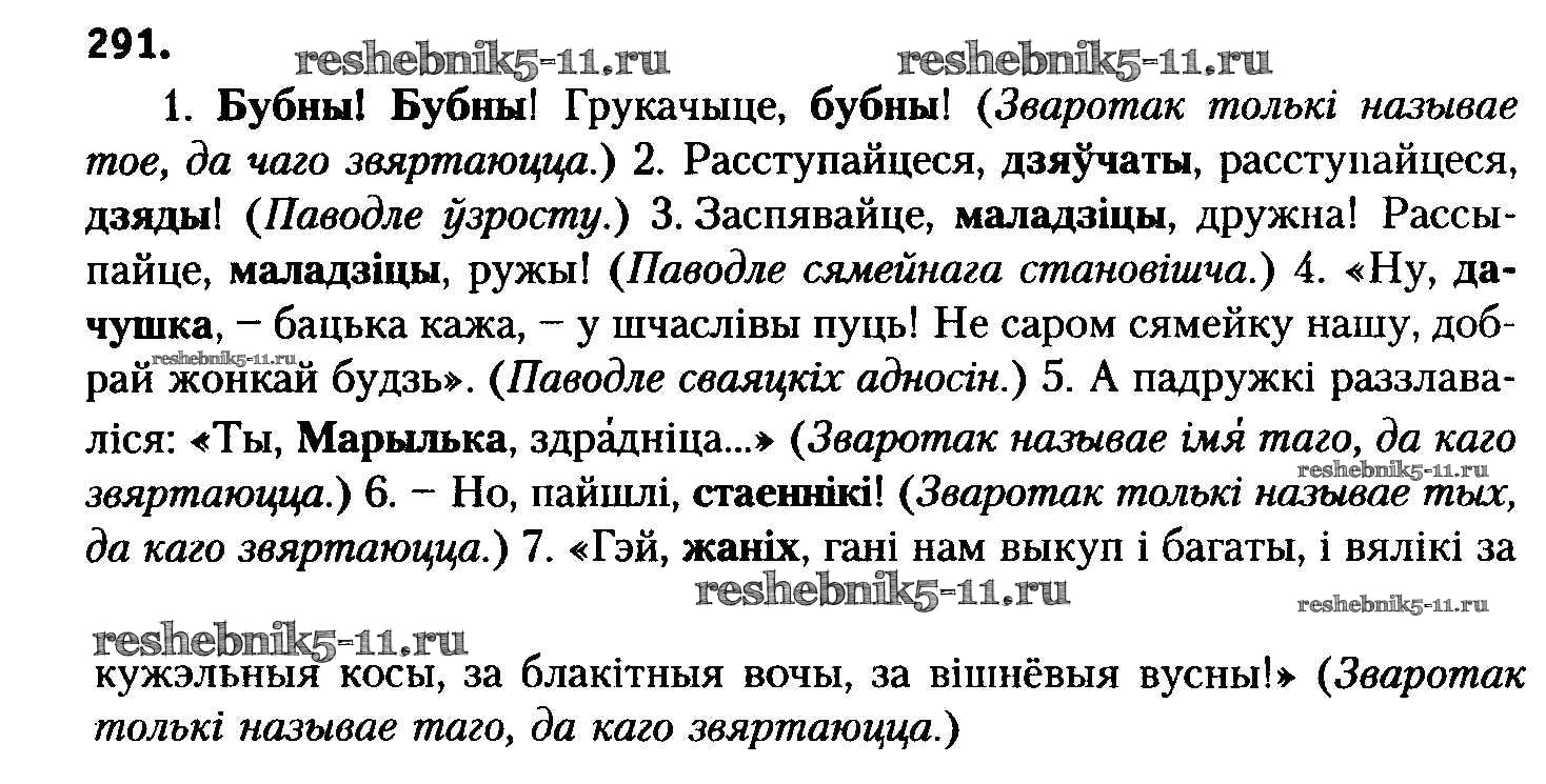 Готовая домашняя работа с ответами по Белорусскому языку за 8 класс Бадзевіч, Саматыя Учебник Национальный институт образования 2015 ФГОС - Упражнения 291