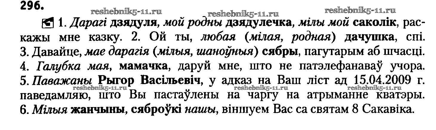 Готовая домашняя работа с ответами по Белорусскому языку за 8 класс Бадзевіч, Саматыя Учебник Национальный институт образования 2015 ФГОС - Упражнения 296