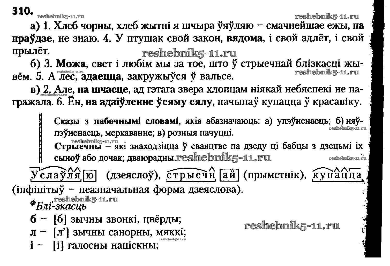 Готовая домашняя работа с ответами по Белорусскому языку за 8 класс Бадзевіч, Саматыя Учебник Национальный институт образования 2015 ФГОС - Упражнения 310