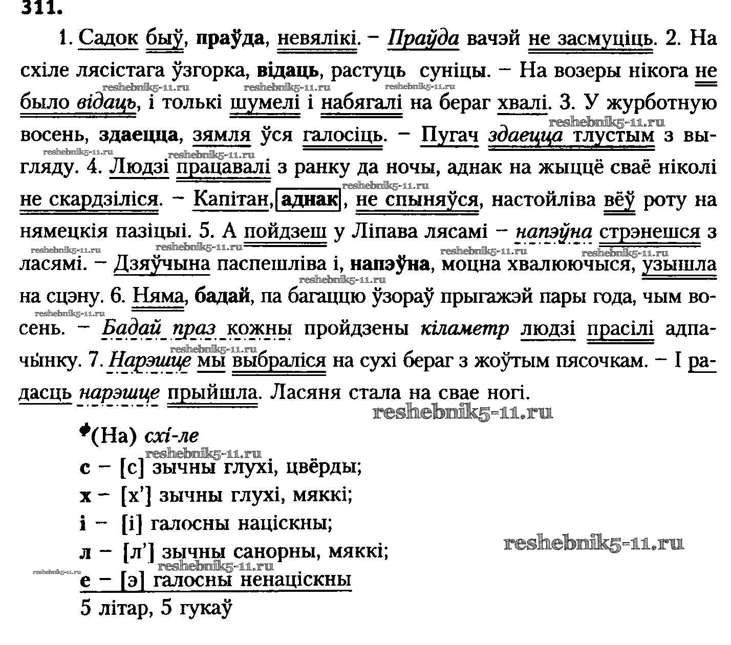 Готовая домашняя работа с ответами по Белорусскому языку за 8 класс Бадзевіч, Саматыя Учебник Национальный институт образования 2015 ФГОС - Упражнения 311
