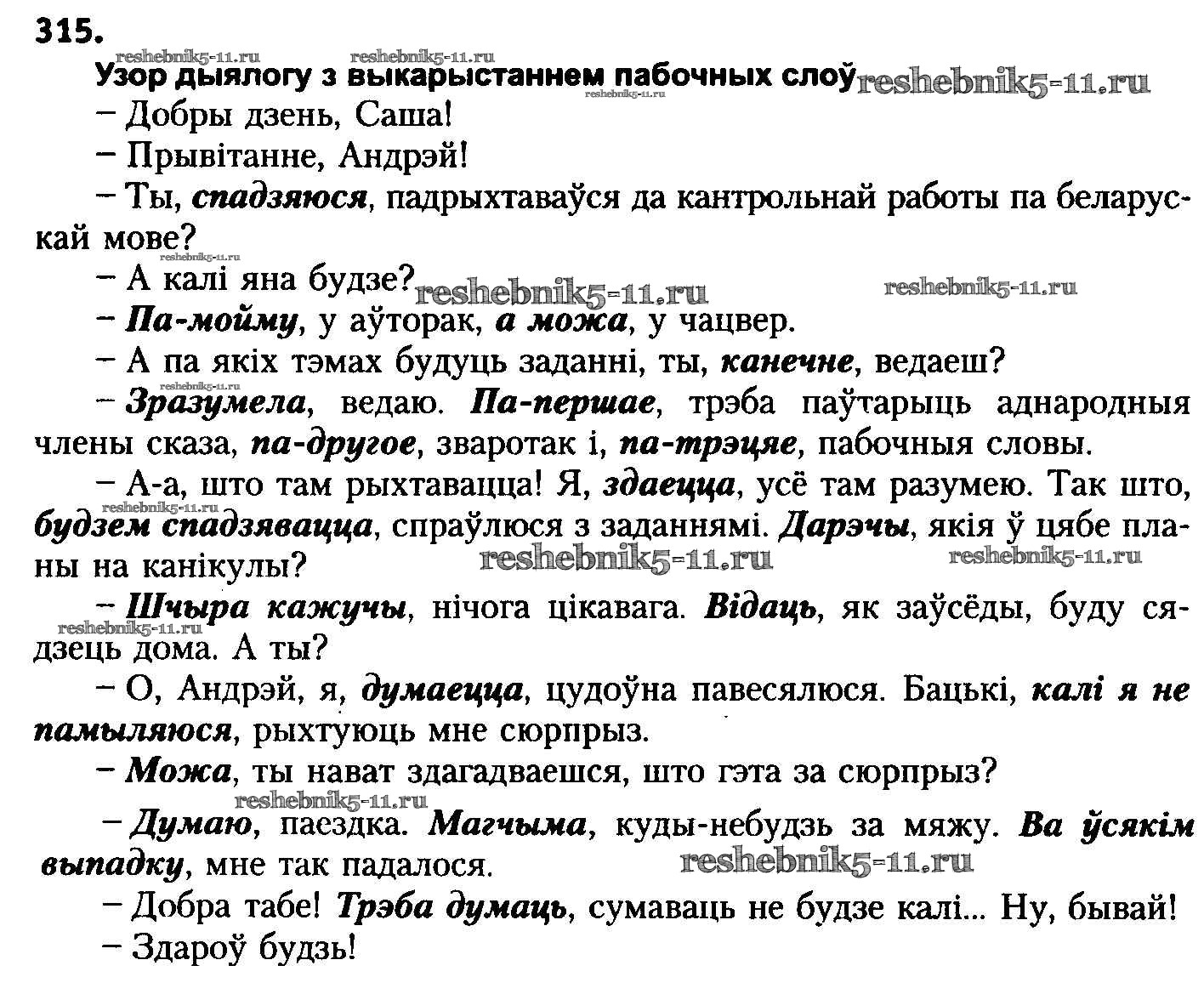 Готовая домашняя работа с ответами по Белорусскому языку за 8 класс Бадзевіч, Саматыя Учебник Национальный институт образования 2015 ФГОС - Упражнения 315
