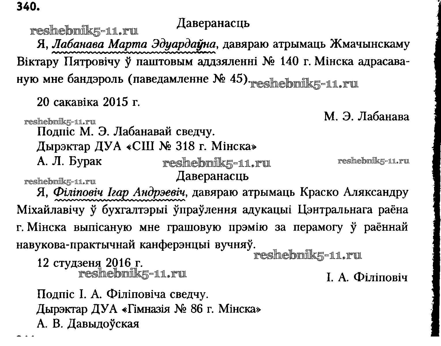 Готовая домашняя работа с ответами по Белорусскому языку за 8 класс Бадзевіч, Саматыя Учебник Национальный институт образования 2015 ФГОС - Упражнения 340