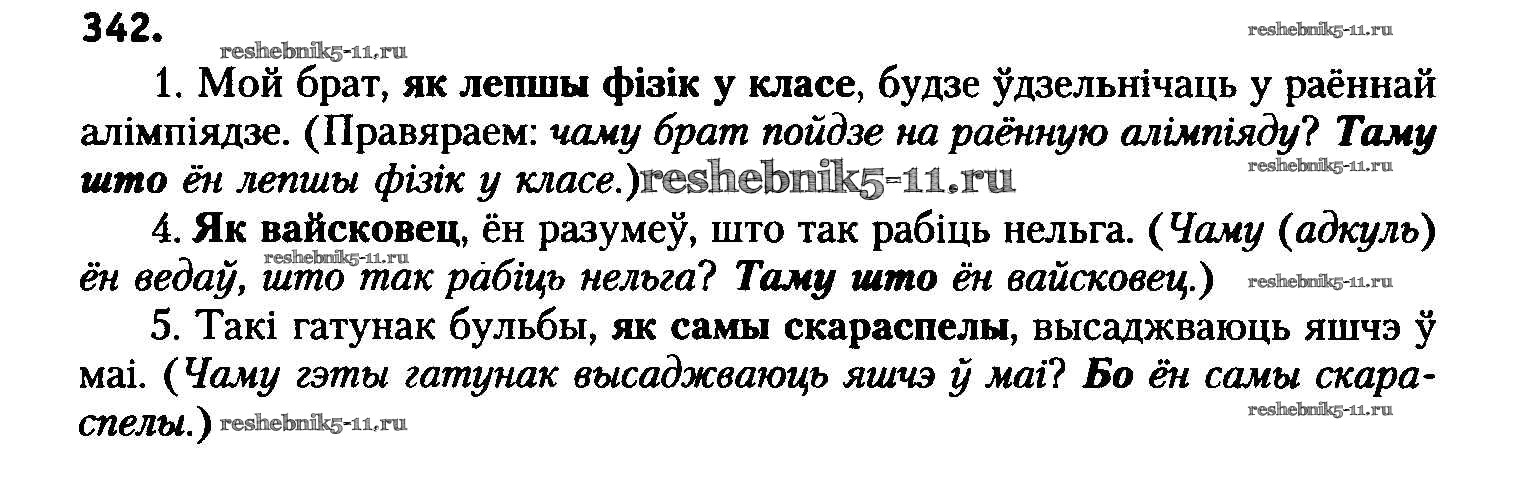 Готовая домашняя работа с ответами по Белорусскому языку за 8 класс Бадзевіч, Саматыя Учебник Национальный институт образования 2015 ФГОС - Упражнения 342