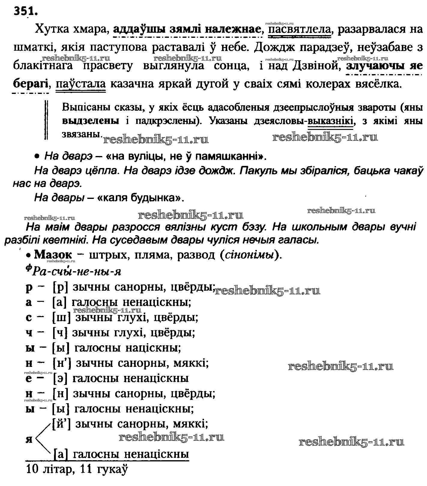 Готовая домашняя работа с ответами по Белорусскому языку за 8 класс Бадзевіч, Саматыя Учебник Национальный институт образования 2015 ФГОС - Упражнения 351