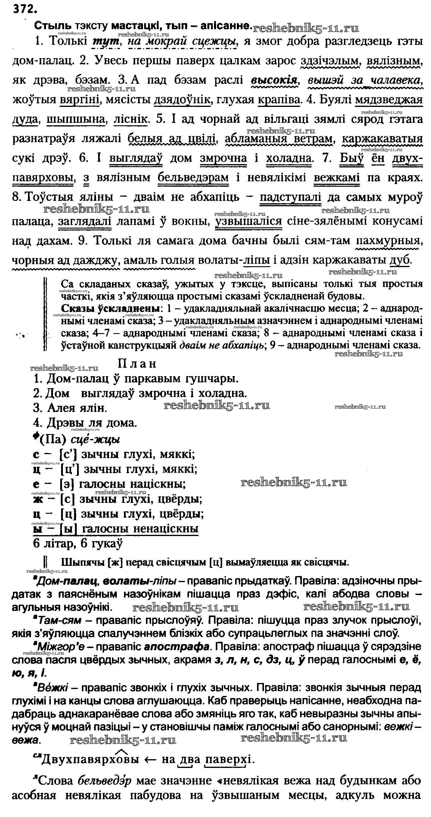 Готовая домашняя работа с ответами по Белорусскому языку за 8 класс Бадзевіч, Саматыя Учебник Национальный институт образования 2015 ФГОС - Упражнения 372