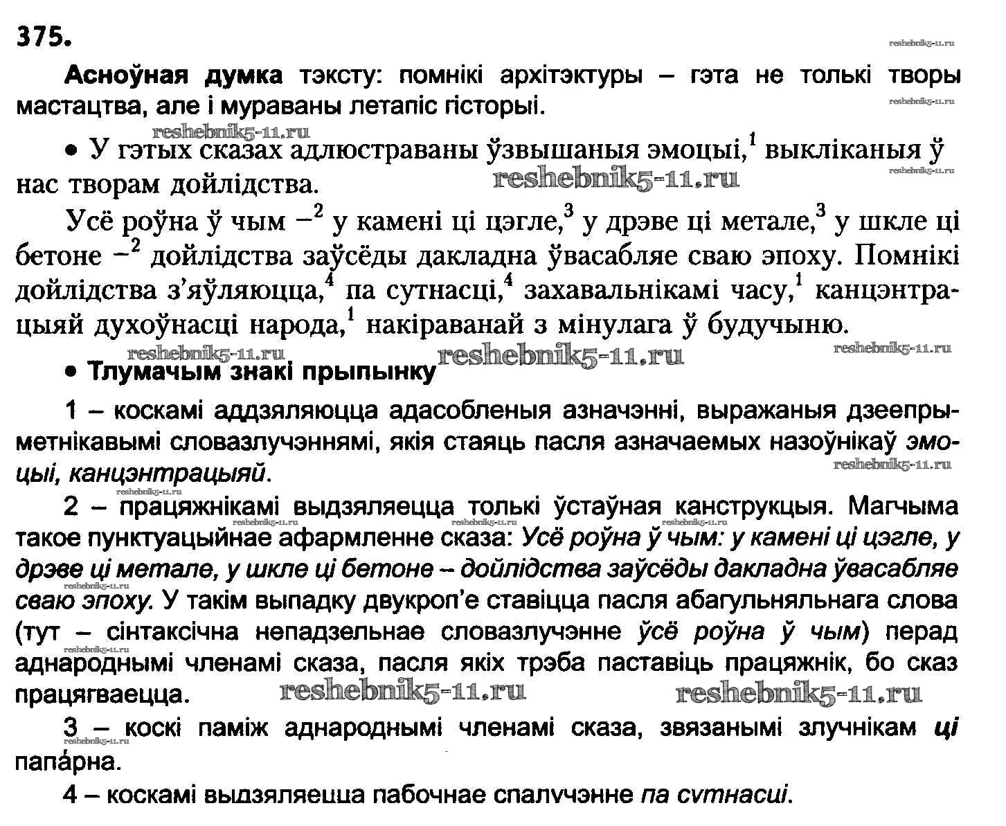 Готовая домашняя работа с ответами по Белорусскому языку за 8 класс Бадзевіч, Саматыя Учебник Национальный институт образования 2015 ФГОС - Упражнения 375