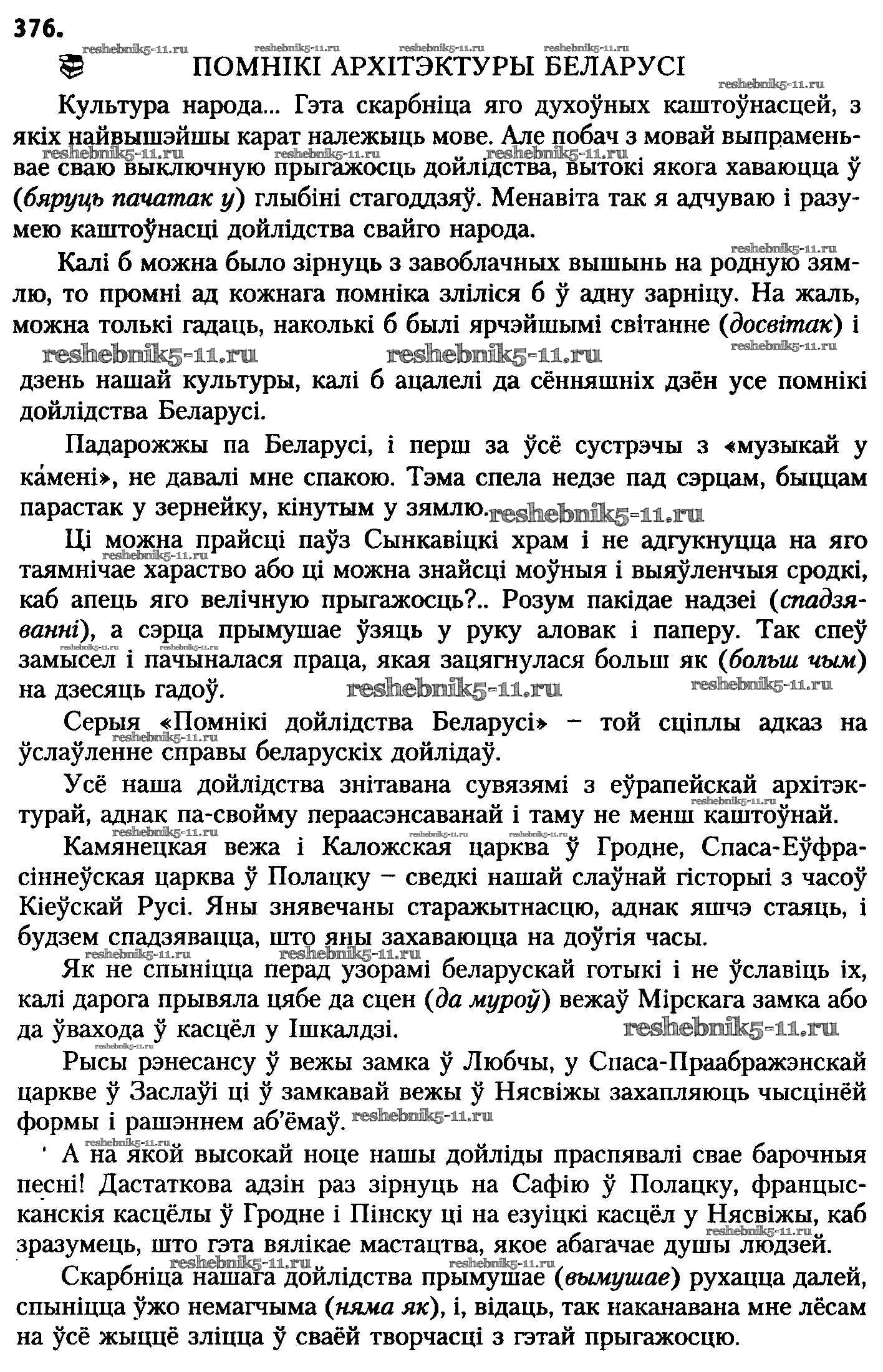 Готовая домашняя работа с ответами по Белорусскому языку за 8 класс Бадзевіч, Саматыя Учебник Национальный институт образования 2015 ФГОС - Упражнения 376